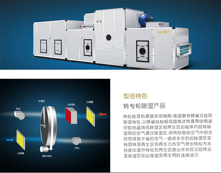 安詩曼是專業(yè)轉(zhuǎn)輪除濕機生產(chǎn)廠家,主要產(chǎn)品有工業(yè)除濕機,高溫烘干機,轉(zhuǎn)輪除濕機,低溫除濕機,吊頂除濕機,商用抽濕機,商用除濕機,工業(yè)抽濕機,工業(yè)干燥機等產(chǎn)品